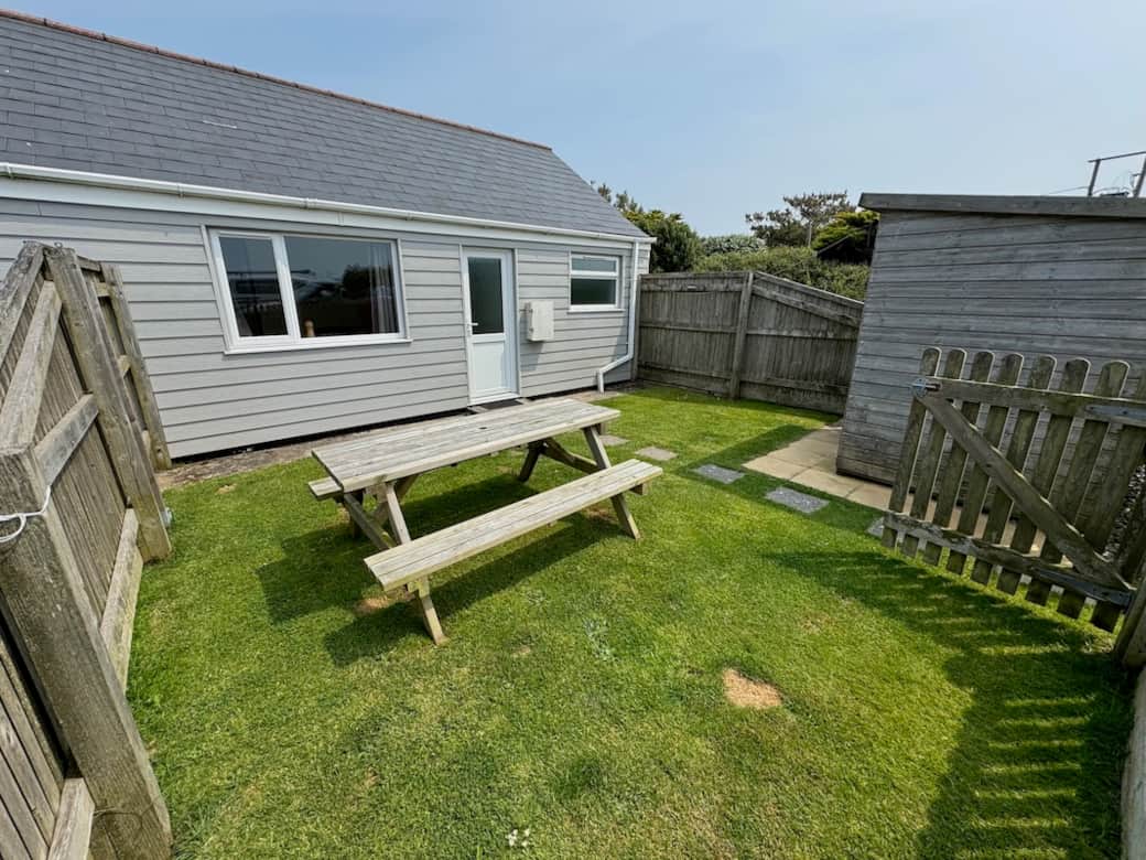 - Private south-facing garden area with picnic table & shed for beach gear